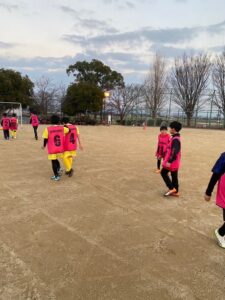 大きなコートで全員で試合をして事あるごとにチーム変えもして、